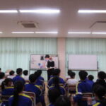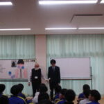 今回は、図書委員会、保健委員会、ボランティア委員会の発表が行われ、各委員会が企画している活動の報告や紹介を、劇やクイズで伝えてくれました。