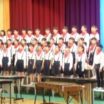 【プログラム4番】歌の森小学校の子供たちから歌のプレゼントをしました。歌は、七夕の時期にちなんで「ほしまつり」でした。台湾の子供たちには、台湾語に訳した歌詞を見てもらいながら聴いていただきました。子供たちは元気な歌声で「ありがとう」の気持ちを伝えることができたと思います。