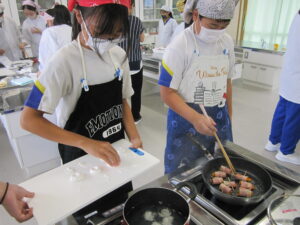 9月24日(水)~9月26日(金)に調理実習を行い、「野菜のベーコン巻き」と「白玉フルーツ」を作りました。