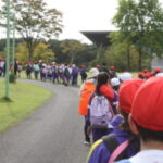秋晴れの良い天気に恵まれ、子供たちは元気に学校を出発し、太閤山ランドへ出発しました。