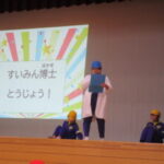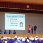 今回は、図書委員会、保健委員会、ボランティア委員会の発表が行われ、各委員会が企画している活動の報告や紹介を、劇やクイズで伝えてくれました。