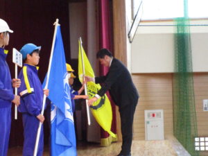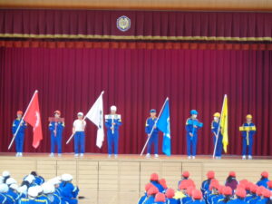 4/28 色団発足式~それいけ優勝へ!~ 2026年4月30日 utanomori 未分類 4月28日(月)、運動会に向けての色団発足式がありました。団旗の贈呈では、各色団の団長・副団長が意気込みを全校児童の前で堂々と話していました。また、応援コールでは、6年生が前に立ち、全員で色団を先導していました。
